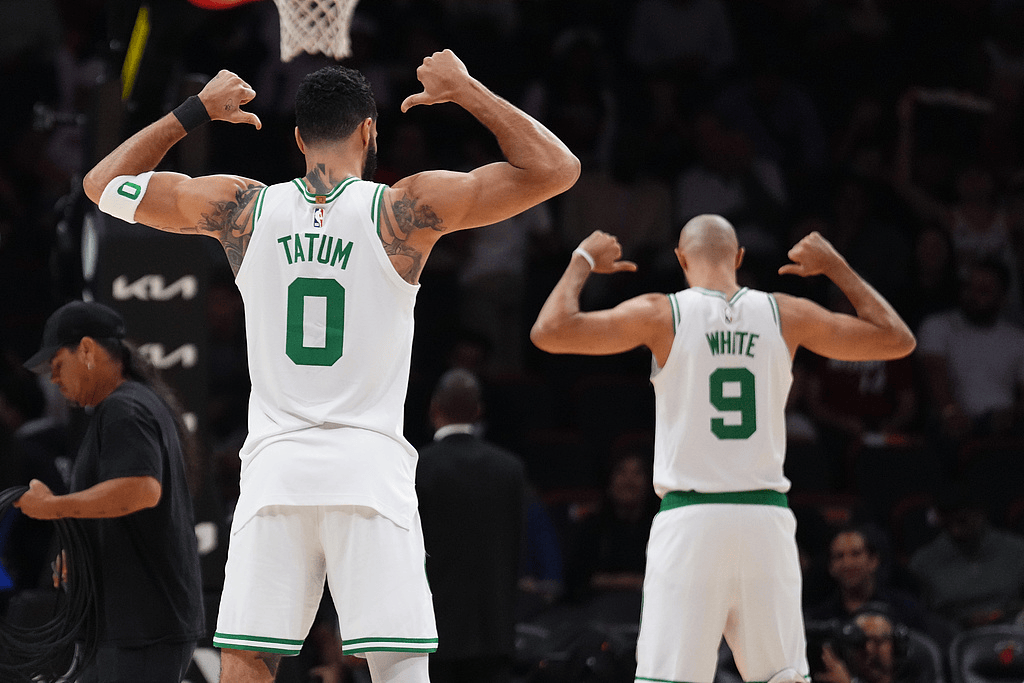 其中绿军对阵热火10胜1负(常规赛6胜0负)