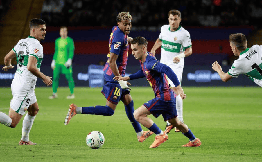 虎扑11月03日讯 在佩德里缺阵的首场比赛中,弗里克押注于卡萨多和德容组成的中场基石。荷兰人承担起了更重要的角色,主动要球,通过转身和长途奔袭来撕裂埃尔切的压迫防守。在他身边,卡萨多做到了对他的要求:一个果断的好搭档。