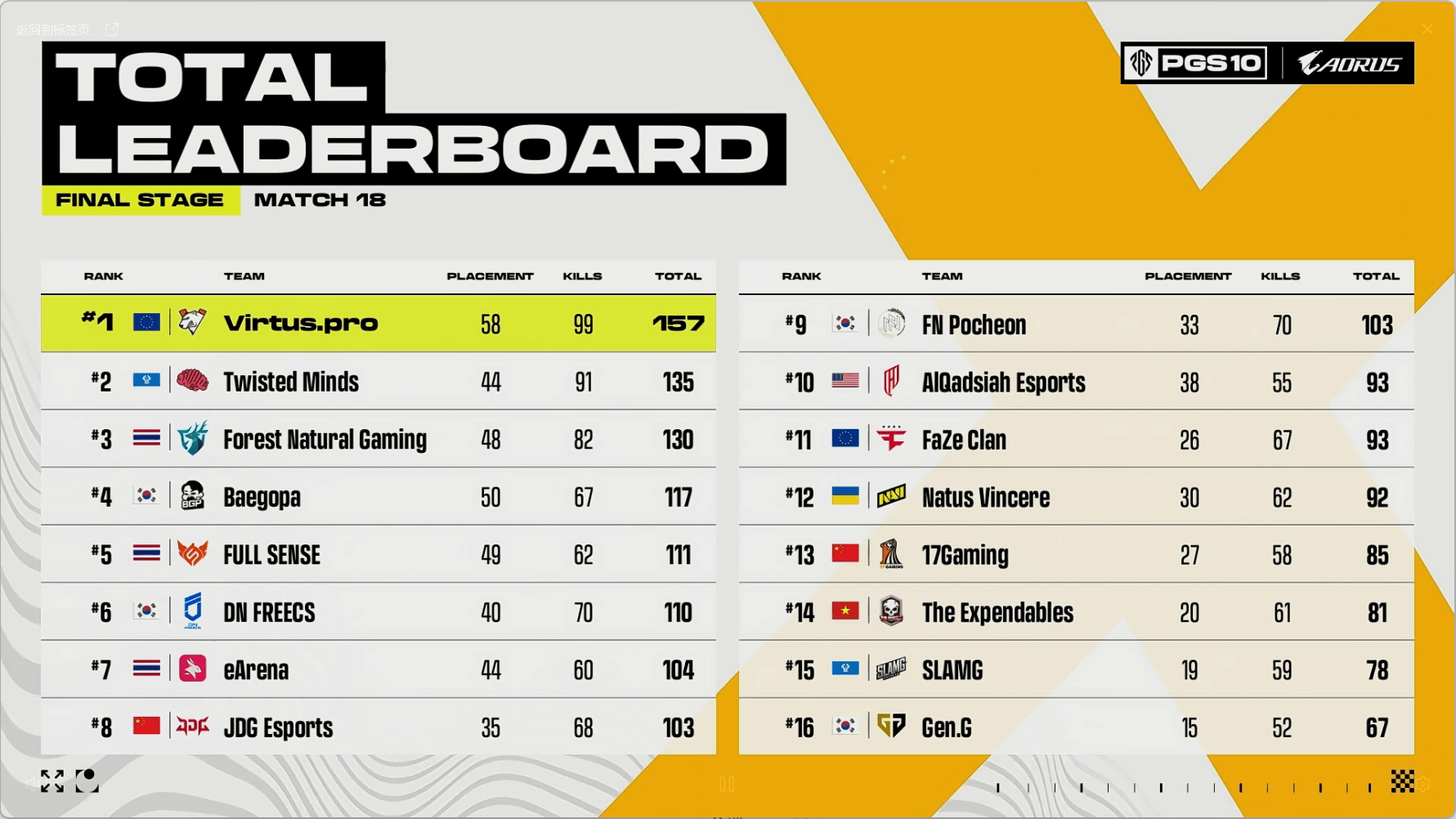 虎扑11月02日讯 PGS10总决赛比赛完赛,本次赛况如下。分夺