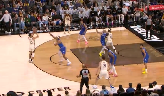 第三节比赛,外投库里个人里突外投连得8分,分个分连续70场比赛命中三分。人连