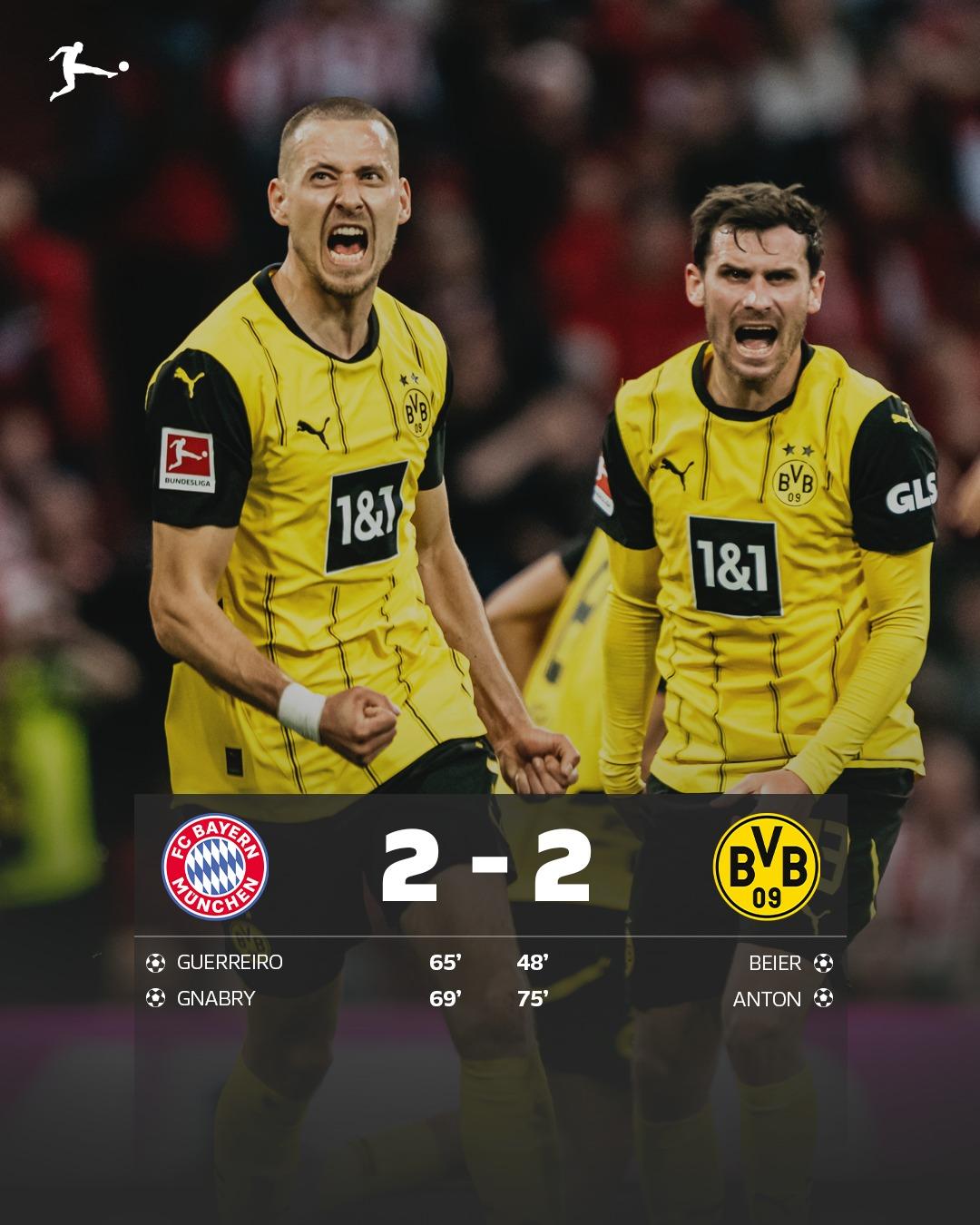 甲官家德24/25赛季德甲第29轮:拜仁2-2多特