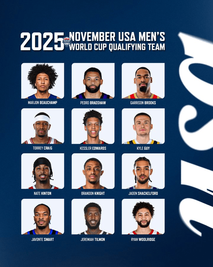 虎扑11月19日讯 今日,美国男篮公布2027年国际篮联世界杯资格赛12人名单: