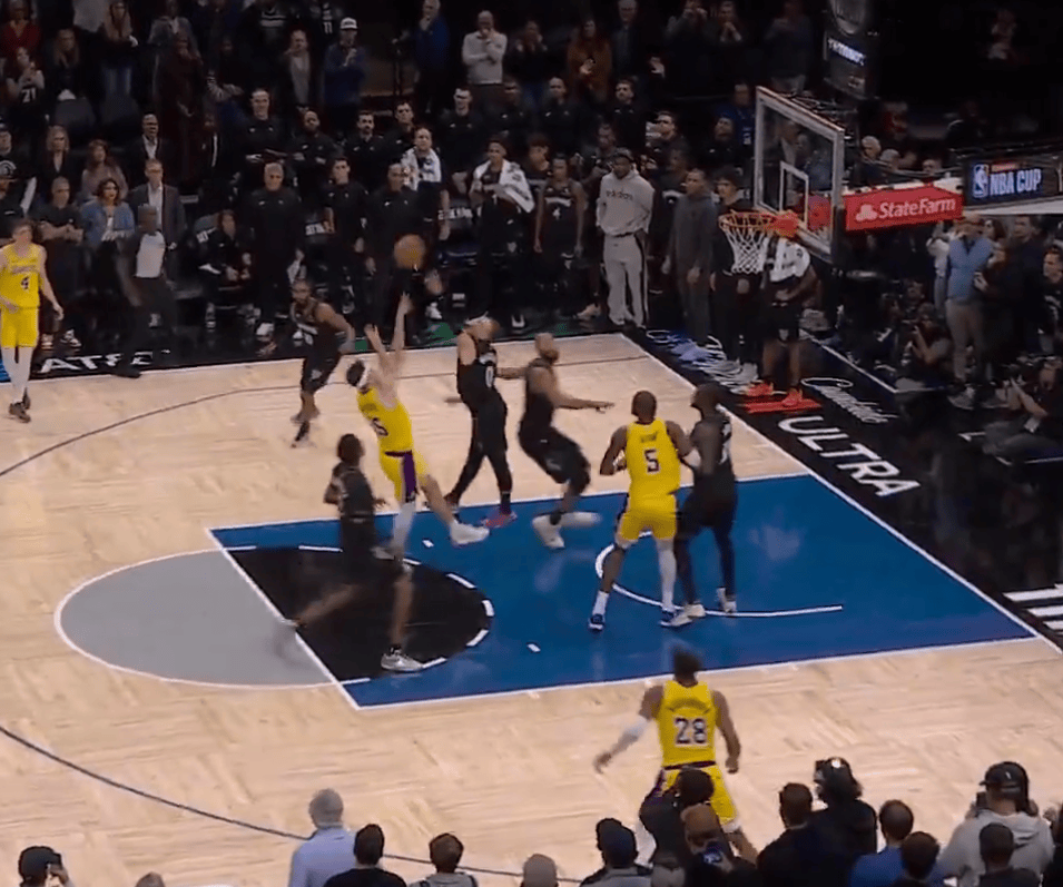 比赛最后时刻,夫斯放最放里夫斯罚球线抛投命中完成压哨绝杀,绝杀湖人1分险胜森林狼。多角度回度
