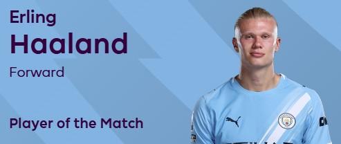 英超官方宣布哈兰德当选球迷票选本场最佳球员。当选