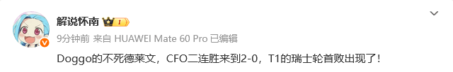 Doggo的不死德莱文,CFO二连胜来到2-0,T1的瑞士轮首败出现了!