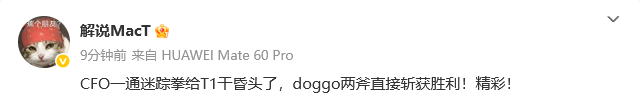 CFO一通迷踪拳给T1干昏头了,doggo两斧直接斩获胜利!板解精彩!说热胜好