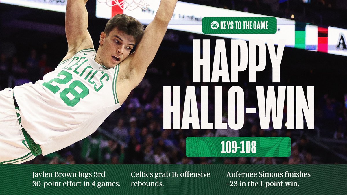 “我们在费城打出了防守,挡住了对手两次绝杀的机会,帮助球队在节日当天锁定了胜局。”凯尔特人官方附文道。