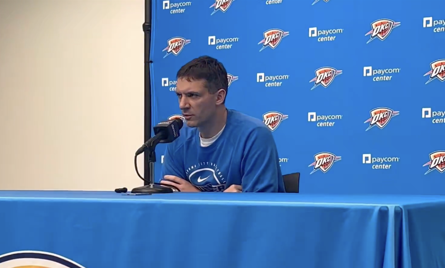 雷霆主帅马克-戴格诺特接受了记者采访。掘自