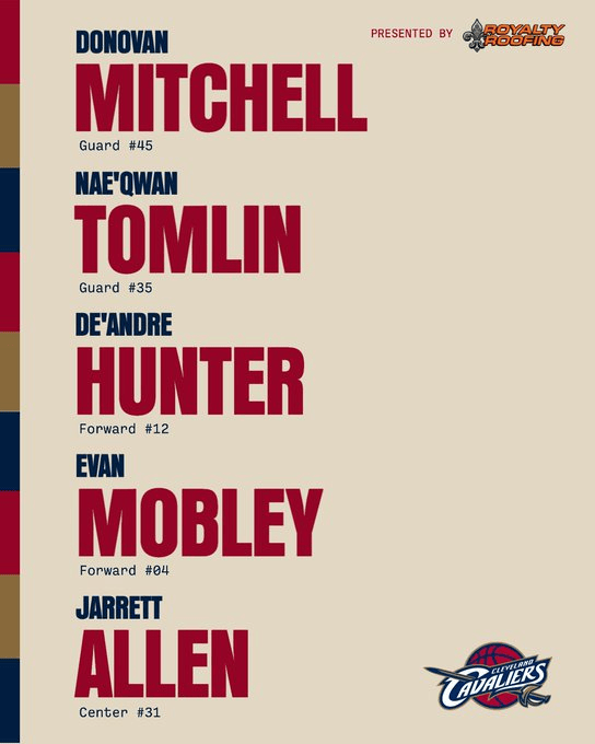 虎扑11月20日讯 骑士更新官方社媒,公布了球队今日的莫布姆林首发阵容。