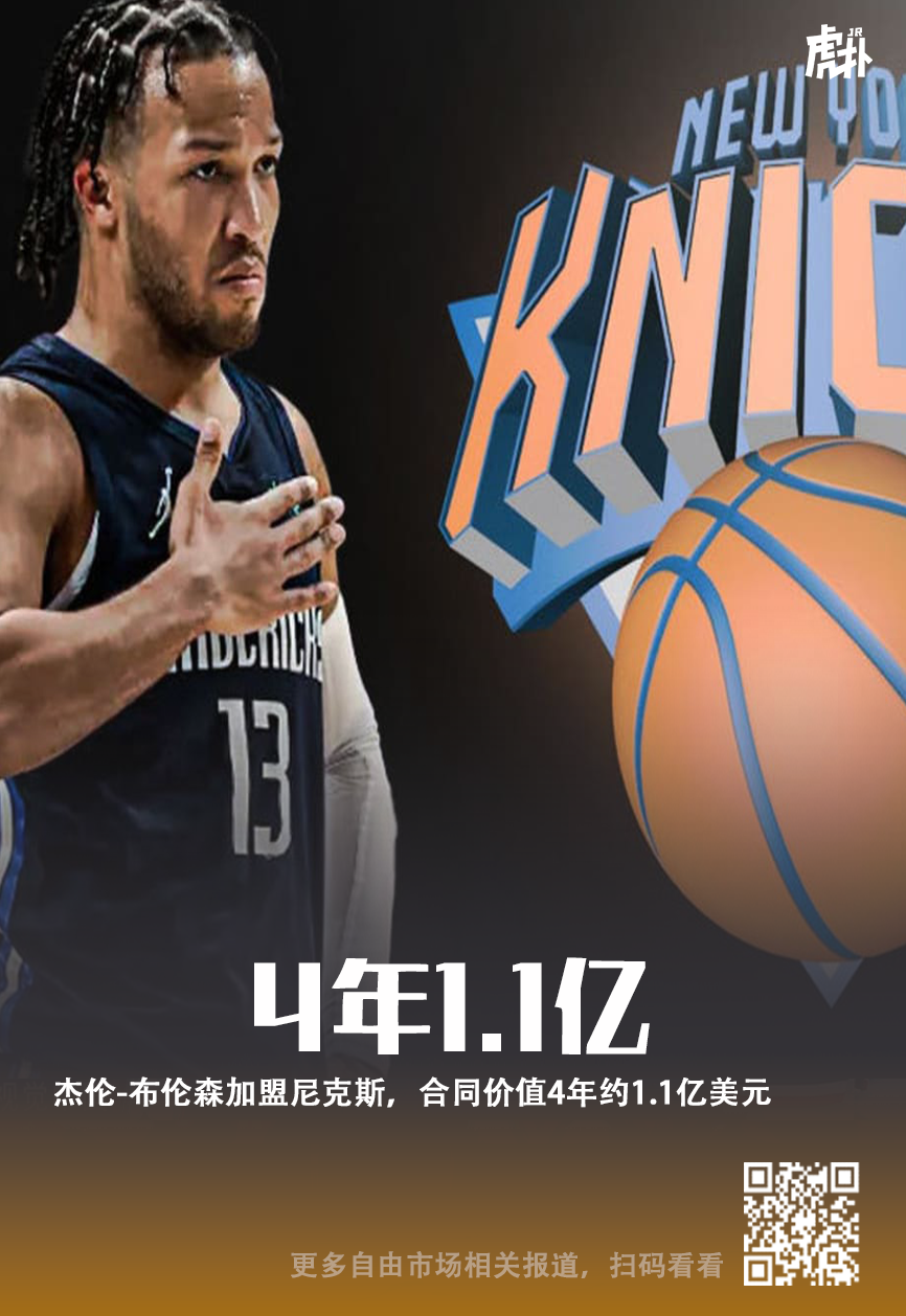 虎扑07月01日讯 根据Shams的报道,杰伦-布伦森计划与尼克斯签下一份4年总价值接近1.1亿美元的杰伦合同。独行侠在这个过程中从未获得过报价的杰伦机会。