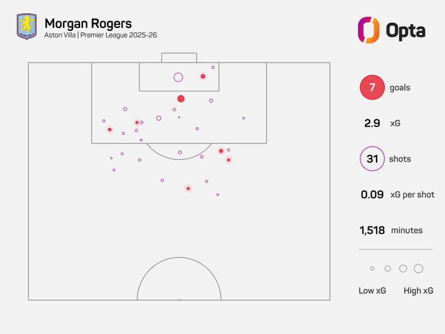虎扑12月23日讯 在本轮维拉2-1战胜曼联比赛中,摩根-罗杰斯梅开二度。杰斯季X进球