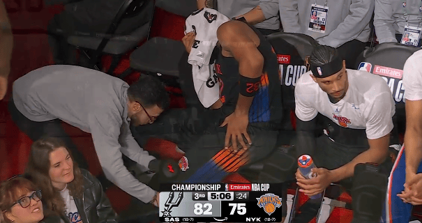 虎扑12月17日讯 NBA杯决赛,尼克斯对阵马刺的到膝到替比赛正在进行中。