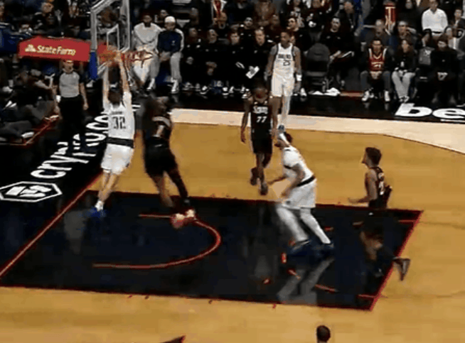 第三节比赛,双手弗拉格一飞冲天双手暴扣,暴扣个人砍下18分&独行侠领先76人4分。砍下