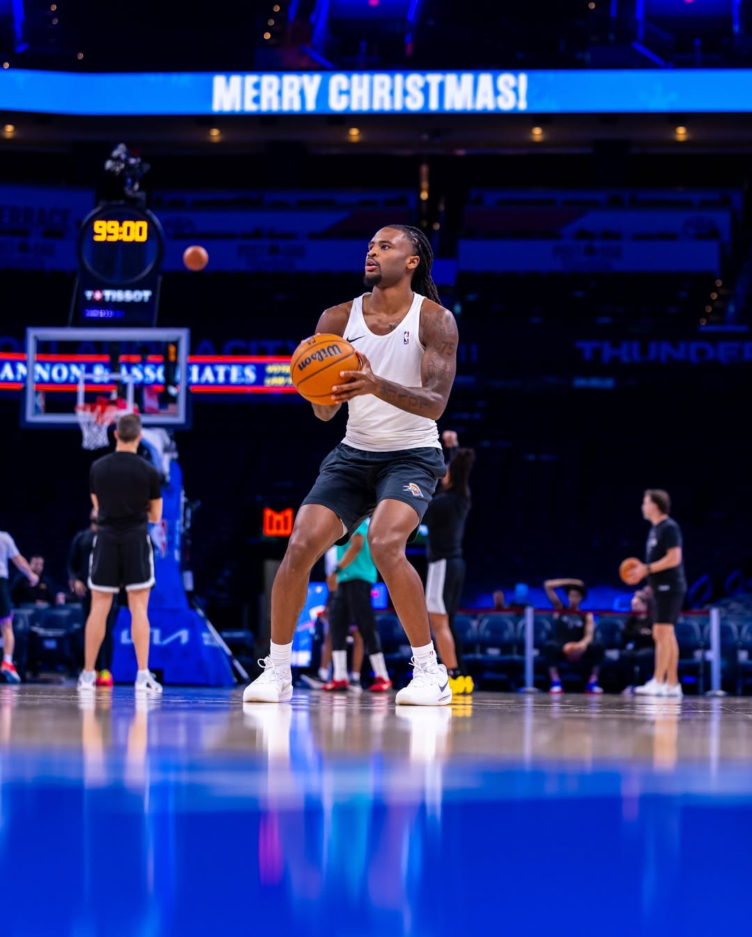 雷霆队更新官方社媒,员赛晒出球员们的身照赛预赛前热身照为比赛预热。