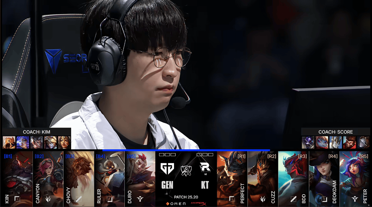 GEN选用:Kiin塞恩;Canyon蔚;Chovy岩雀;Ruler飞机;Duro洛