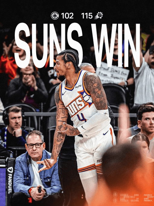 虎扑11月07日讯 今日NBA常规赛,太阳115-102战胜快船。全场庆祝