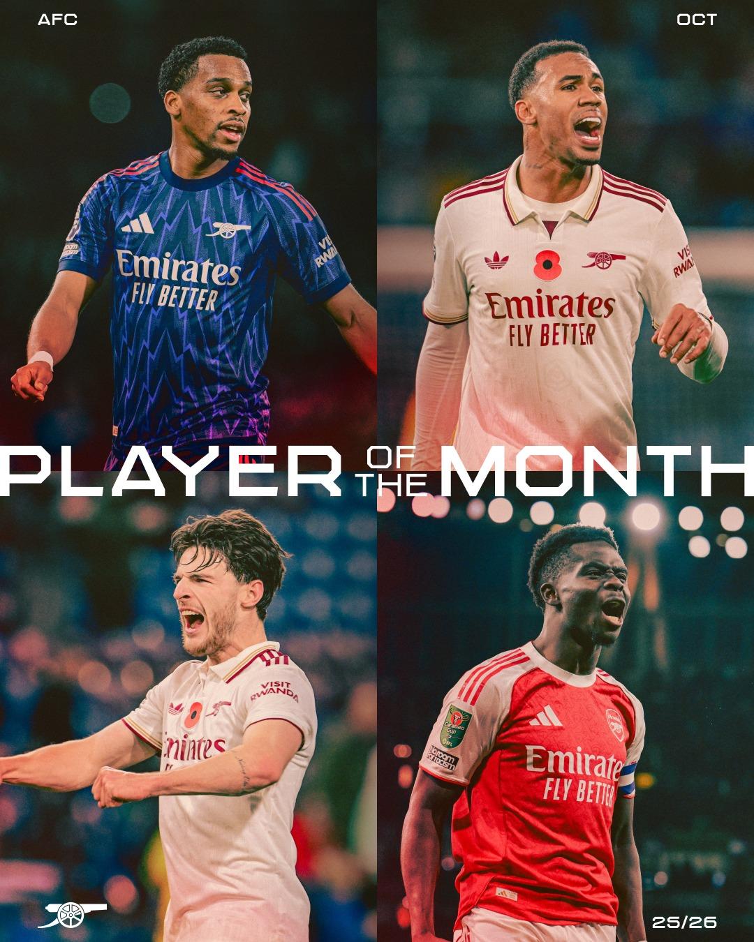 虎扑11月03日讯 阿森纳官方公布10月份队内最佳球员候选名单: