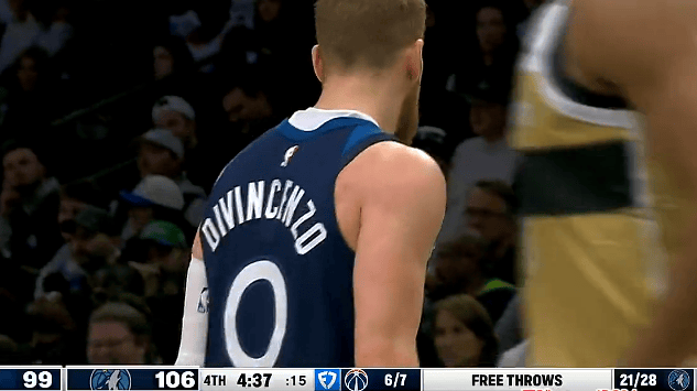 第四节比赛中,末节森林狼106-101领先奇才,流言林狼转播方打出罚球对比,板森森林狼28罚21中、末节奇才7罚6中。