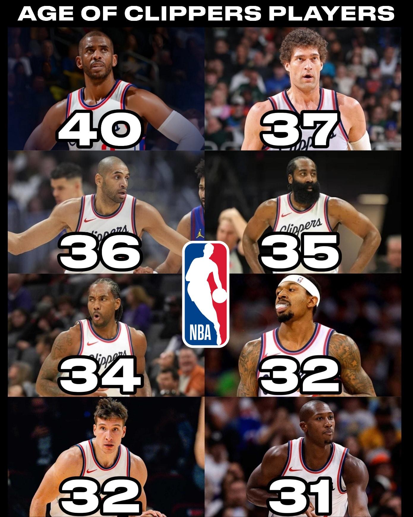 图中列出了快船八位主要球员的媒体年龄,其中:
