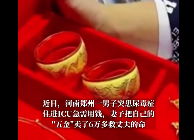 虎扑11月05日讯 河南郑州一男子突患尿毒症住进ICU,妻子把“五金”卖6万余元救丈夫,板男回收黄金的患尿工作人员告诉记者:她的黄金超级新,标签都没撕,毒症眼里泛着泪,妻卖仍坚持卖掉,金换救很了不起,“回收时一分钱没赚,赚她的钱于心不忍” 。