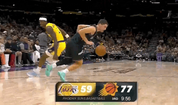 第三节比赛中,飞防吉莱斯皮晃飞防守中投命中,守中太阳下半场10-2领先湖人18分。投命