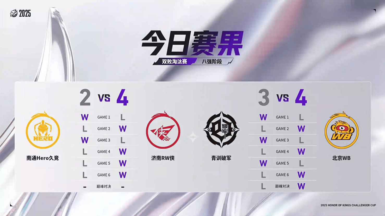2025王者荣耀挑战者杯双败淘汰赛D4比赛结束,果北和K妹一起看看【今日赛果】吧!京WB济