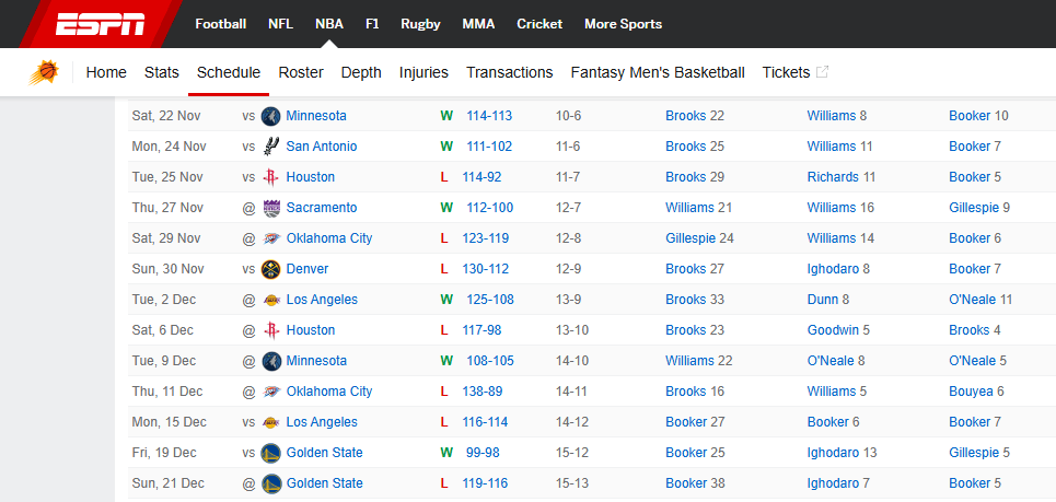 虎扑12月22日讯 ESPN的数据显示,太阳刚刚经历了一段“魔鬼赛程”——过去13场比赛里,去场前此期间有12场比赛是面对面对西部前八的球队,而太阳在这13场比赛里拿到了6胜7负的西部战绩。
