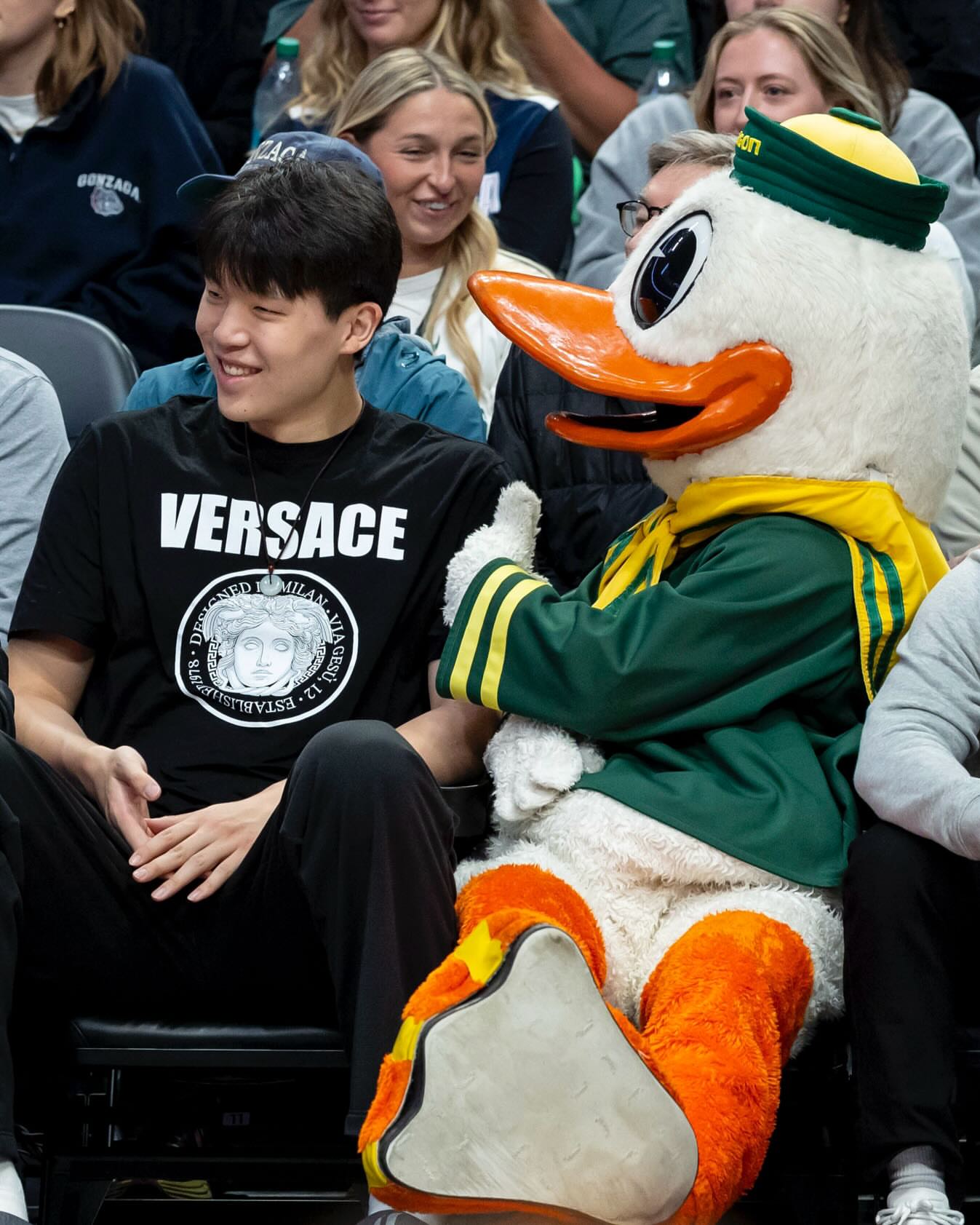 开拓者球员杨瀚森被拍到,板开与自己的官方翻译在场支持正为俄勒冈大学出战的老乡林葳。