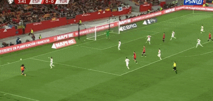 库库传中,奥尔莫禁区内摆脱后轻松破门,西班牙1