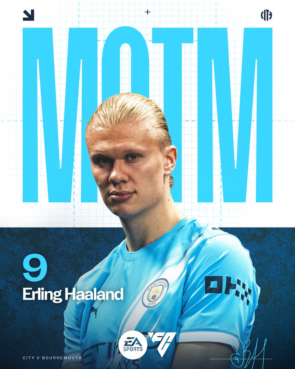 曼城官方宣布哈兰德当选本场比赛队内最佳球员。曼城