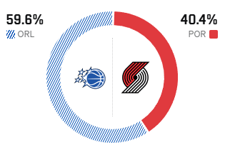 赛前,日比美媒ESPN预测本场比赛,赛胜术达开拓者胜率为40.4%,而魔魔术胜率为59.6%。