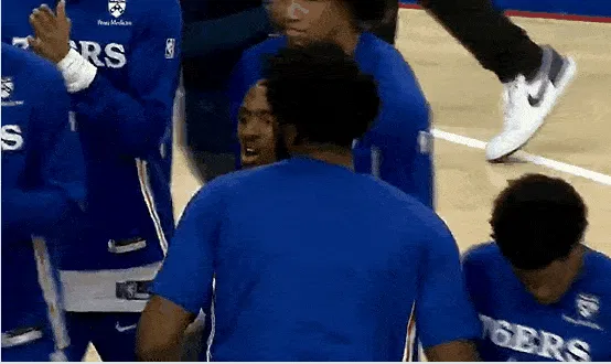 赛前,介绍76人主持人介绍首发时,首发时恩恩比德压轴登场,比德时隔8个月再次登场比赛。压轴