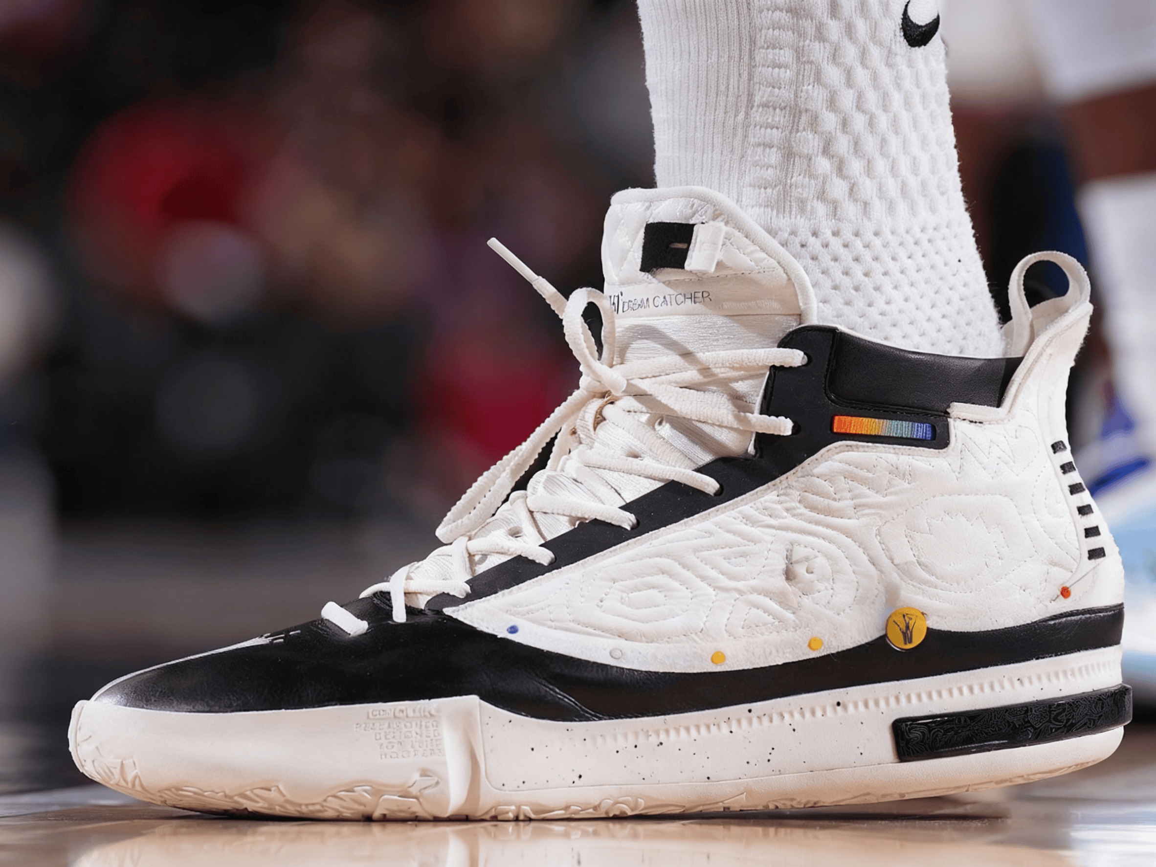 比赛中,着阴约基奇上脚太极鸳鸯配色361° Joker1"Duality"PE。