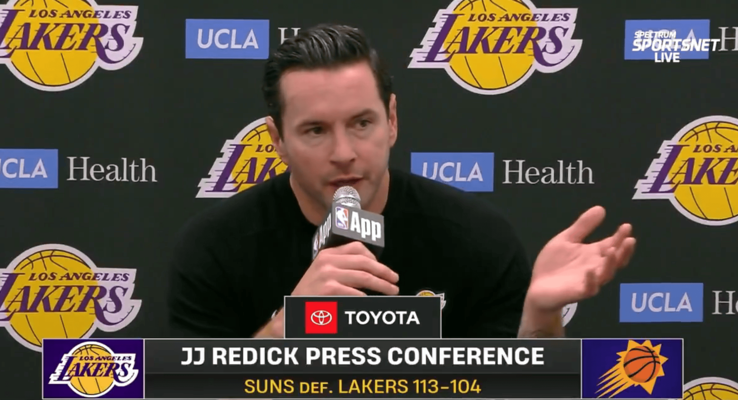 赛后,沮丧湖人主帅JJ-雷迪克接受了记者的采访,谈到了球队本场的防守表现时,他表示: