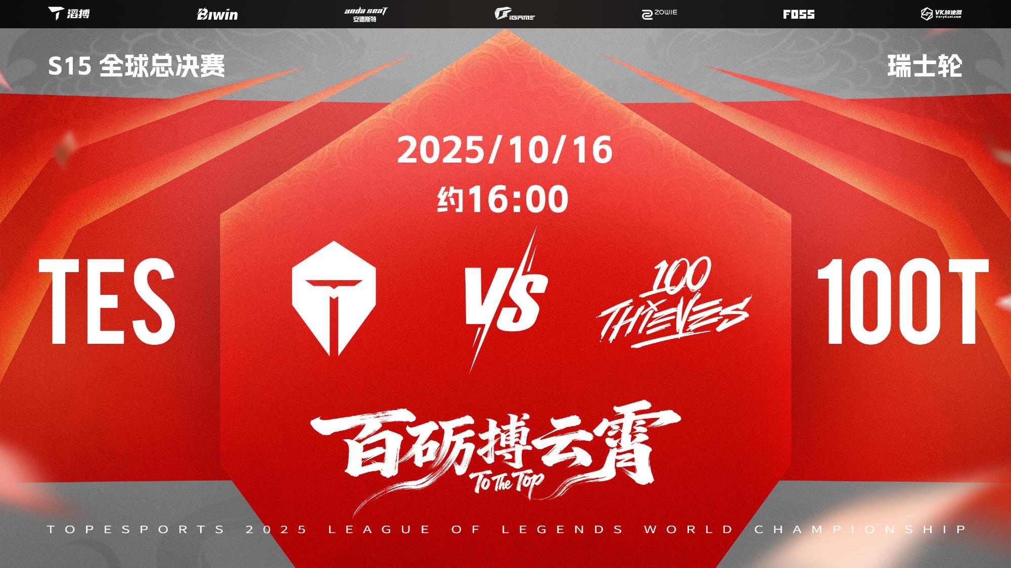 虎扑10月16日讯 今日约16:00瑞士轮第二轮TES将对阵100T战队,TES官方发布赛前海报: