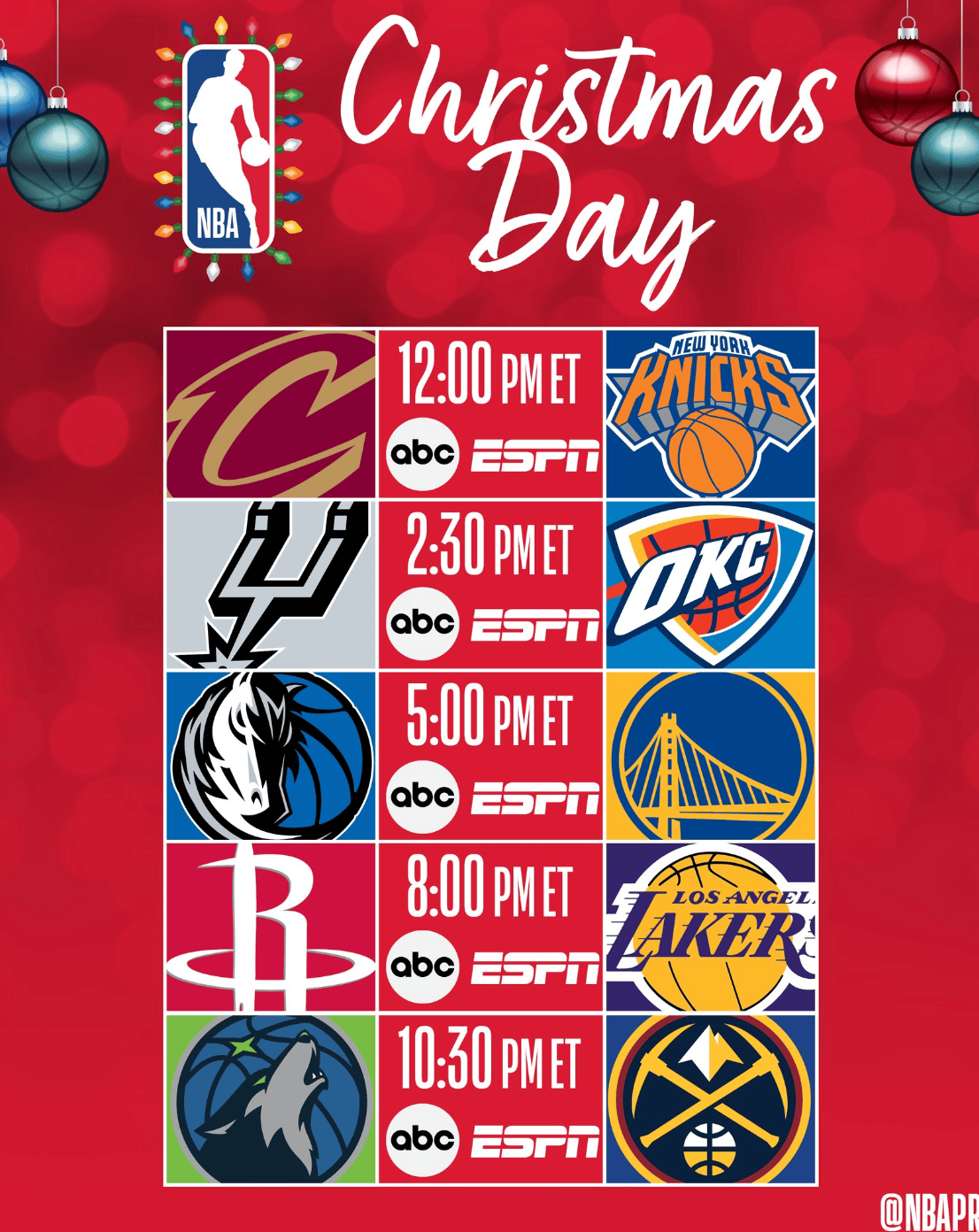 虎扑08月12日讯 NBA官方今日公布了2025-26赛季圣诞大战赛程,具体如下(北京时间):