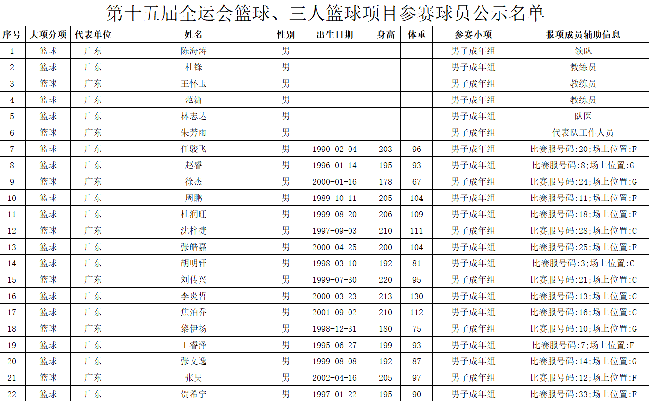 虎扑10月14日讯 中国篮协官方发布公告,广东全运男篮各组别队伍的东全名单已经出炉。