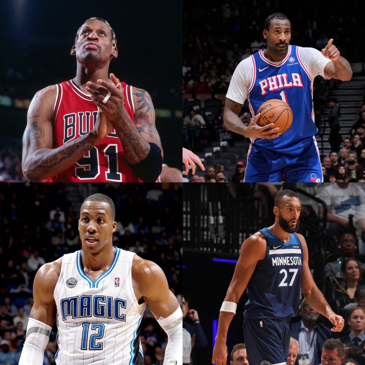 图中四名球员是:丹尼斯-罗德曼,安德烈-德拉蒙德,德怀特-霍华德和鲁迪-戈贝尔。
