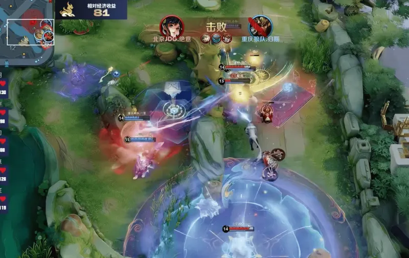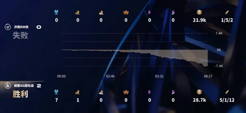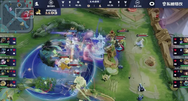 对阵重庆狼队的第二局,北京JDG一度被打到1-9的人头比、落后8.1K的经济。