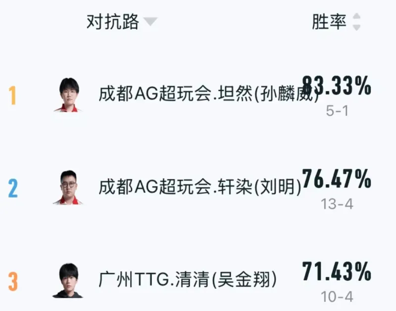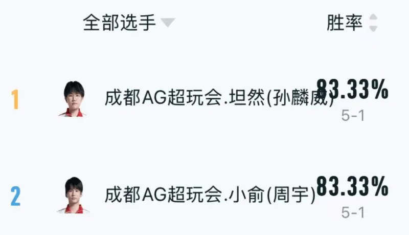 原本令人担心的阵容深度问题,非但没有出现,甚至还打出了仅次于成都AG超玩会大师轮换双边的胜率。
