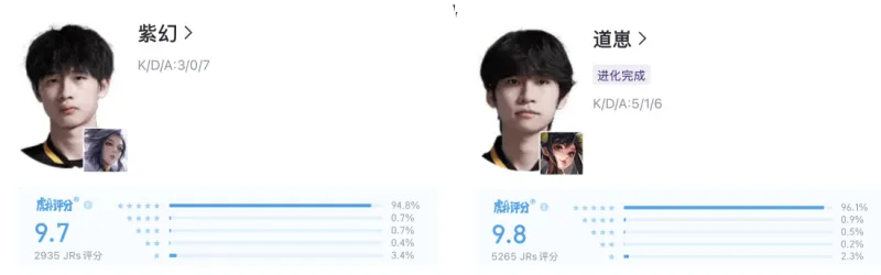 紫幻这边,擂台赛阶段交出了联赛中路第一的场均击杀,以及队内第一的虎扑评分。