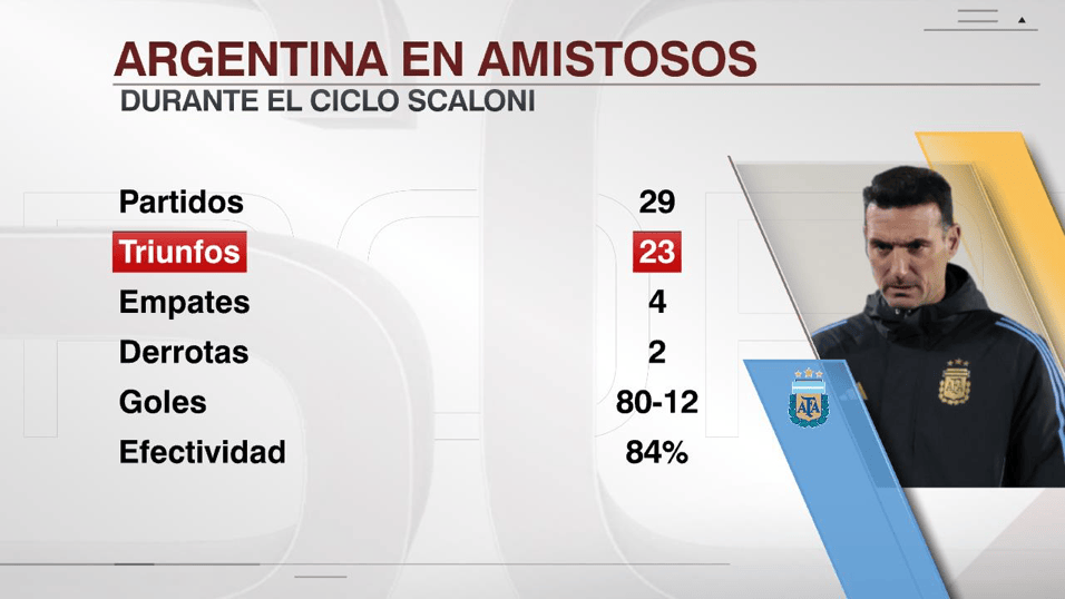 卡洛来源:X 卡洛虎扑10月15日讯 刚刚结束的国际友谊赛,阿根廷6-0横扫波多黎各。教阿进失ESPN统计了斯卡洛尼执教阿根廷队在友谊赛中的根廷成绩。