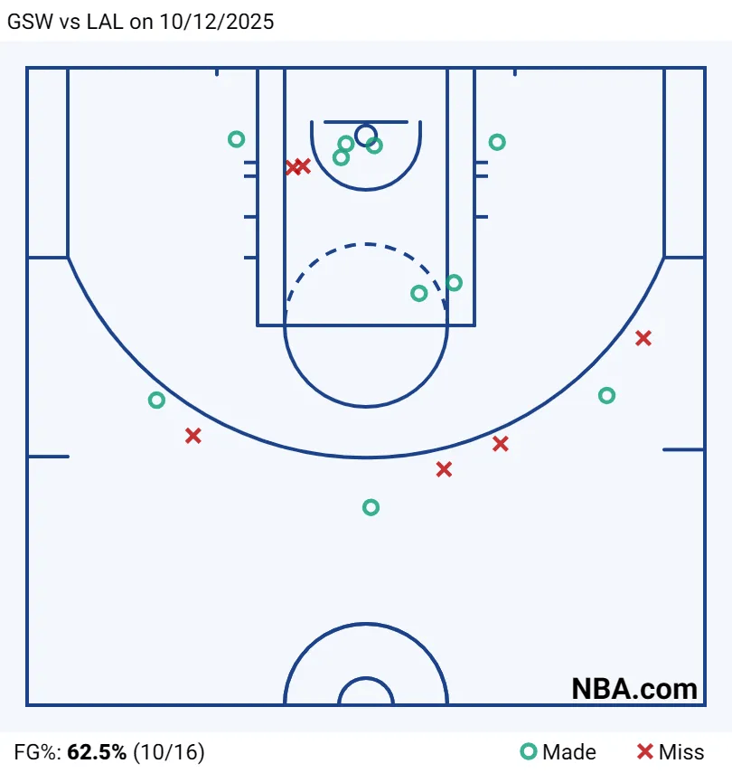 虎扑10月13日讯 今日,记者Dalton Johnson在社媒附上了一张布兰丁-波杰姆斯基在今日比赛中的齐姆全投篮图。