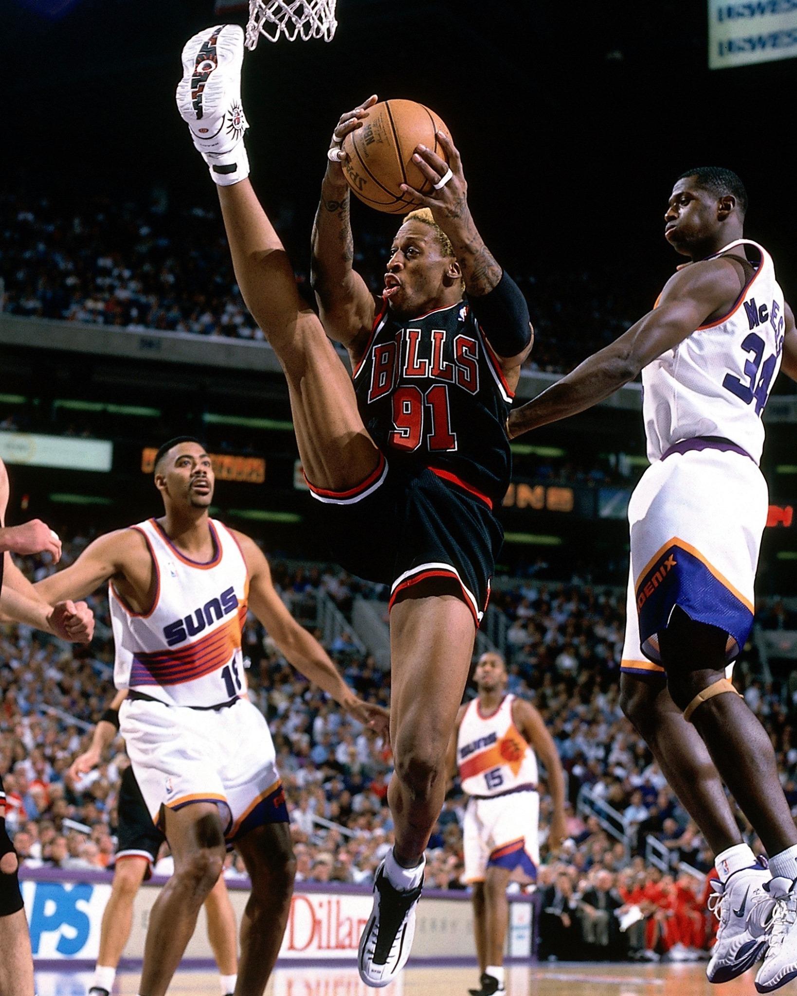丹尼斯-罗德曼生涯曾效力于活塞,公牛,马刺,湖人和独行侠。