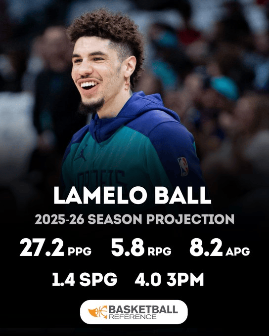来源:X虎扑10月14日讯 今日,知名数据媒体Basketball Reference更新动态,板同板助预测了拉梅洛-鲍尔下赛季的意知场均数据: