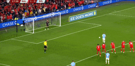 德布劳内主罚点球,轻松罚进扳平比分,比利时1