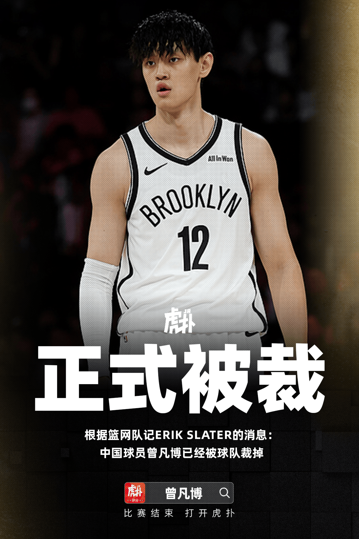 篮网来源:NBA官网 篮网虎扑10月15日讯 根据篮网队记Erik Slater的报道,中国球员曾凡博已经被球队裁掉。球队球