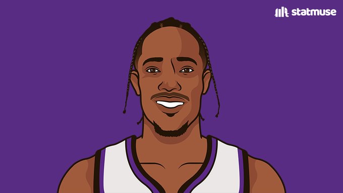 虎扑08月05日讯 今日,美媒StatMuse更新社交媒体,板美晒出有关德马尔-德罗赞的媒晒数据纪录。