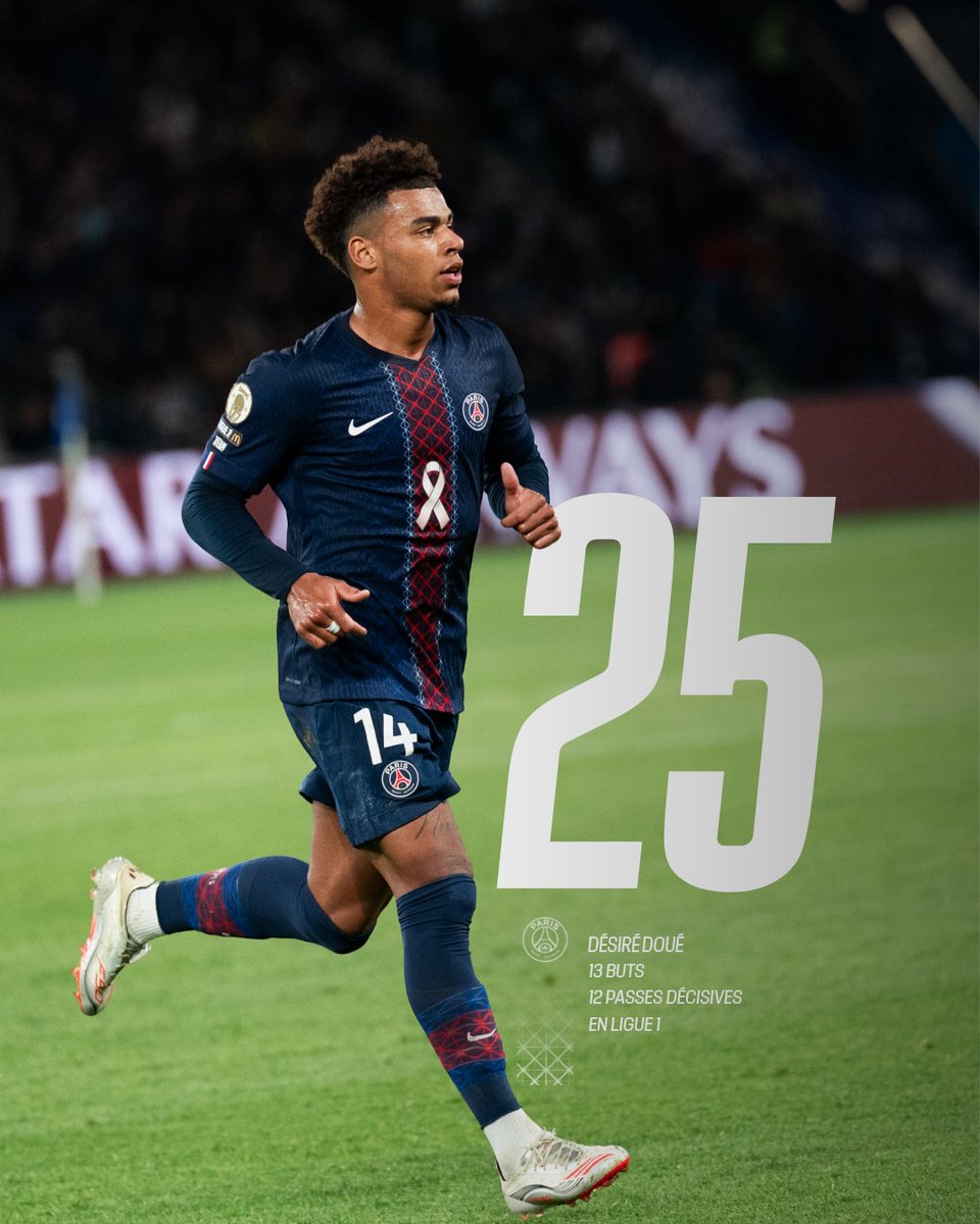 虎扑10月18日讯 巴黎圣日耳曼官方报道,在巴黎3-3战平斯特拉斯堡的甲已比赛中贡献一次助攻后,德西雷-杜埃目前已在法甲联赛中参与25粒进球,参球其中包括13粒进球和12次助攻。为年
